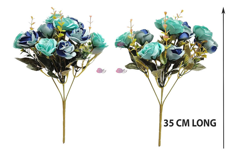 Immerse yourself in the magic of the extraordinary with these captivating artificial blue roses. This unique set comes with 2 individual flower bunches (approximately 35cm tall x 10cm wide) crafted from high-quality fabric. The enchanting blue color and realistic details create a stunning display that will add a touch of whimsy and elegance to any space.
