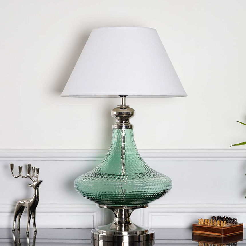 Glass & Metallic Table Lamps With Cotton Shade