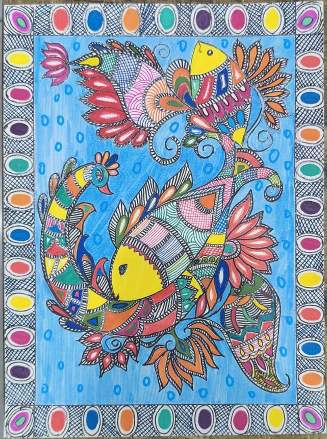 Carefully created in traditional Madhubani style, featuring intricate patterns, expressive figures, and vibrant natural elements that tell a story.