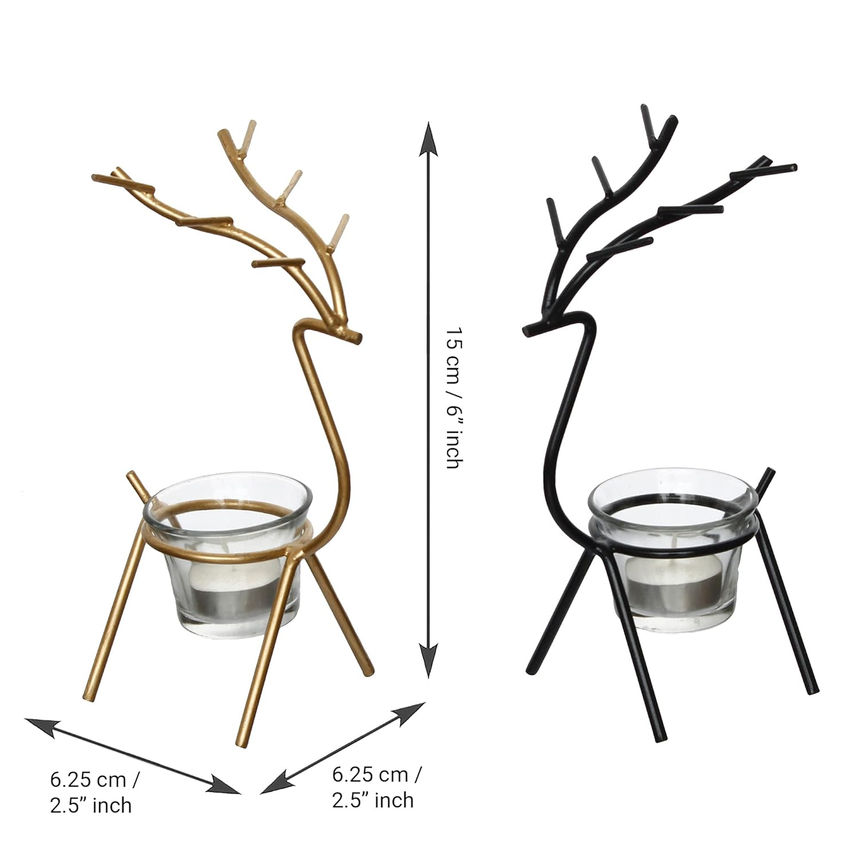 Enchant Your Home with Black and Gold Deer Tealight Candle Holders (Set of 2)