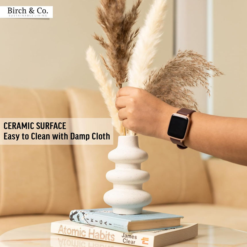 This ceramic vase is the perfect complement to your modern home decor collection. It seamlessly integrates with various aesthetics, acting as an elegant pampas grass holder, a striking container for exotic houseplants or wintry florals, or a trendy addition to your boho shelves or dining table.